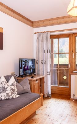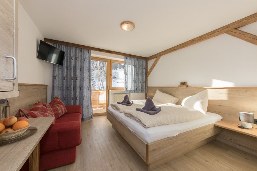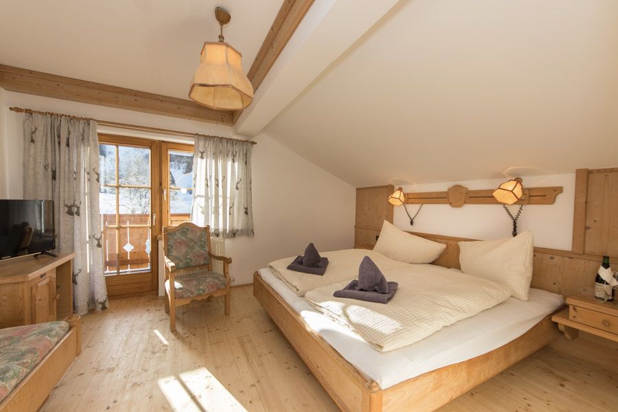 Zur Ausstattung gehören Dusche/WC, SAT-TV, kostenloses W-Lan und ein eigener Balkon mit Blick auf die umliegende Berglandschaft. Nach einem aktiven Tag in der Natur finden Sie hier einen ruhigen Rückzugsort. Auf Wunsch kann Halbpension dazugebucht werden.
